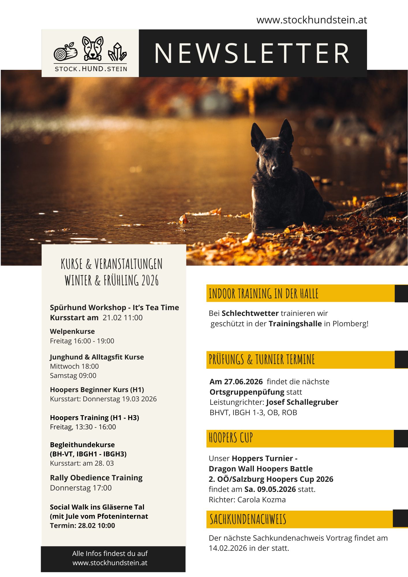 Hier findest du den Stock.Hund.Stein Newsletter mit allen aktuellen Infos zu den Kursen und Veranstaltungen zum Download als PDF