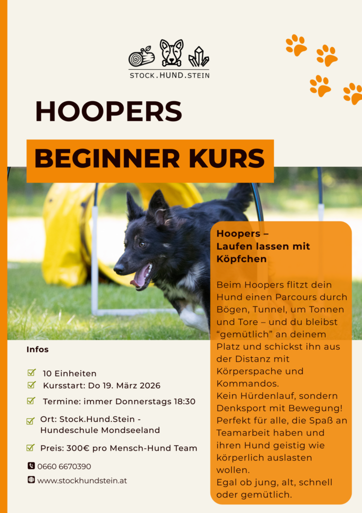 10 Einheiten Hoopers Kurs für Mensch-Hund Teams die mit Hoopers starten wollen + 10 Einheiten Hoopers Trainings am Freitag Nachmittag (50% Preisvorteil)